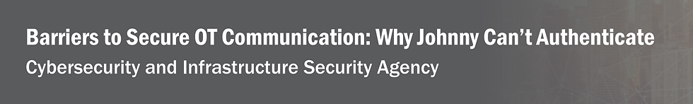 Amerikanska cybersäkerhetsmyndigheten CISA har producerat ett riktigt intressant papper kring säkra OT-protokoll med titeln "Barriers to Secure OT Communication: Why Johnny Can’t Authenticate".